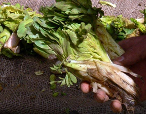 بعد از انجام كشت پاييزه بذر كرفس كوهی، جوانه های گياه در فروردين ماه از زير خاك بيرون می آيند. برگ های اوليه بعد از چند روز كامل می شوند. در اين مرحله ريشه گياه هنوز به حالت دوكی شكل خود نرسيده و عمق آن حداكثر به 5 سانتیمتر می رسد. بعد از گذشت حدود 20 روز برگ جديد را با حاشيه مضرس و بريده بريده می توان ديد. در اين مرحله ريشه گياه، دوكی شكل شده و عمق آن بالغ بر 15 سانتيمتر می شود. در صورتی كه آبياری انجام نشود، رشد گياه از اين مرحله به بعد چندان زياد نبوده و گياه تقريباً در پايان ارديبهشت ماه شروع به زرد شدن می كند. در اين مرحله ريشه گياه بسته به بافت خاك حداكثر 20 سانتيمتر عمق پيدا كرده است.