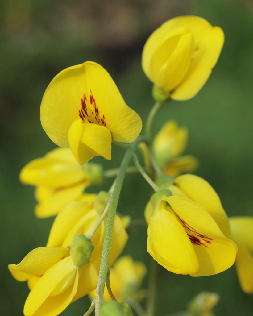 گل‌ها پروانه آسا، زرد، در گل آذين خوشه‌ای انتهايی، اغلب واژگون میباشند.