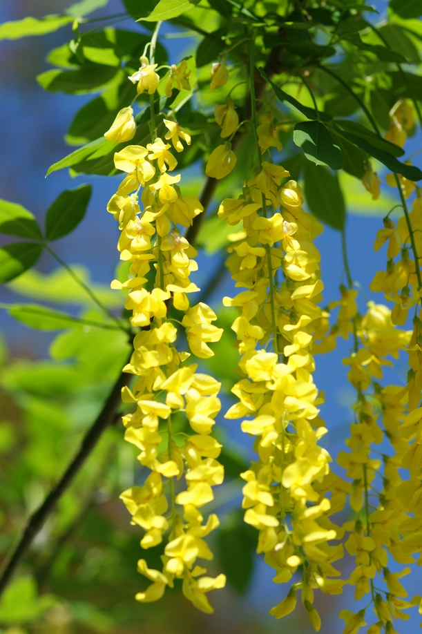 Laburnum Anagyroides درختچه‌ای بزرگ يا درختی به ارتفاع 7 متر بومی مناطق کوهستانی جنوب اروپا، دارای تاج عموماً كروی تا مخروطی، با شاخه‌های ايستاده، با پوست سبز مايل به خاكستری و خزان كننده میباشد.