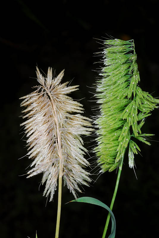 گل ها به صورت سنبله و به طول دو تا شش سانتیمتر و پهنای یک تا دو و نیم سانتیمتر می باشند. این گل ها به رنگ زرد طلایی بوده که در برخی موارد نیز به رنگ ارغوانی دیده می شوند. سنبلچه ها در گروه های دو تا پنج تایی در انتهای شاخه ها ظاهر می شود. هر سنبلچه نازا به طول پنج تا هشت میلیمتر و به صورت خطی – نیزه ای است. سنبلچه های زایا به طول دو تا سه میلیمتر و دارای دو دندانه است.