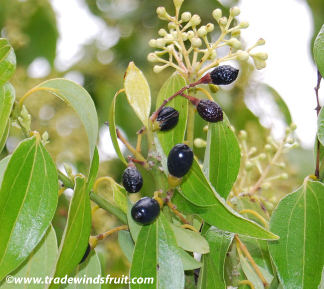 میوه ها نیز حدود یک سانتیمتر قطر داشته و در صورت بلوغ به رنگ سیاه دیده می شوند.