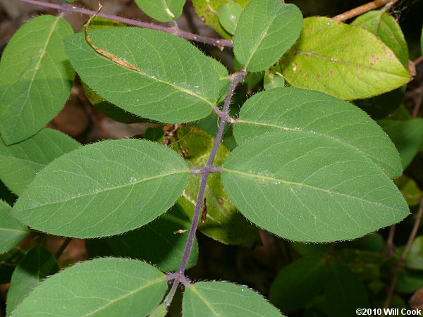 دارای برگهای مخالف، بیضی شکل ساده با طول 3 تا 8 سانتی متری و عرض 2 تا 3 سانتی متری میباشد.