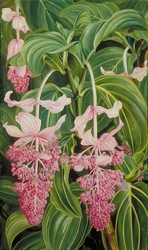اين گياه درختچه اي از تيره ملا ستوماسه ها با برگ هاي پهن بيضي شكل و متقابل است،گل ان خوشه بزرگ و طويلي به رنگ صورتي و آويخته مي باشد كه مزين به برگ هاي همرنگ گل است
