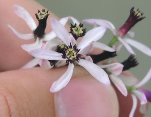 گل های آن معطر و به رنگ آبی مایل به بنفش و به صورت خوشه مرکب است که در هر گل آن، 5 یا 6 گلبرگ باریک، به حالت افتاده و 10 تا 12 پرچم وجود دارد. گلبرگ های آن در پایه قسمت لوله ای شکل به هم پیوسته اند.