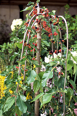 Morus alba Var.pendulawhite mulberry که به فارسی توت مجنون نامیده میشود، گیاهی از خانواده moraceae بومی شرق آسیا (چین) می باشد. نیاز های این گیاه عبارتند از نور: زیاد رطوبت: کمی مرطوب درجه حرارت: بین -3 تا 16 درجه درجه سانتیگراد خاک: خاک رسی،شنی ماسه ای غنی خوب زهکشی شده