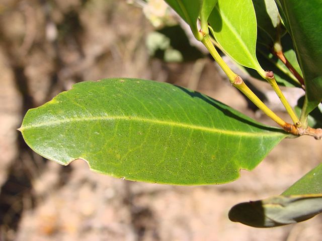 این برگ ها غنی از فلاونوئیدها به خصوص مایریستین، کمفرول و مشتقات فلاونوئیدی از کوئرستین می باشند. تحقیقات نشان داده که این ترکیبات، سبب جلوگیری از خونریزی شده و اثرات پادزهری در صورت گزش توسط نیش مار را دارد.