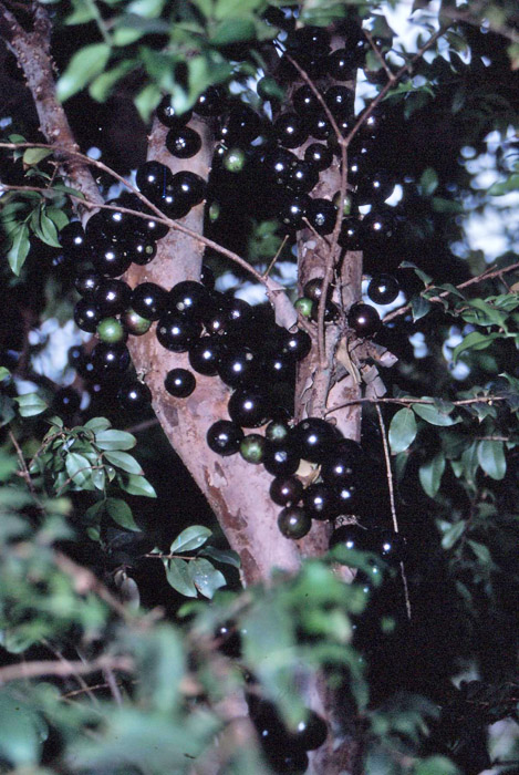 میوه ها از نوع سته ای، به قطر 3 تا 4 سانتیمتر و دارای پوستی ضخیم می باشند. این میوهها شباهت زیادی به نوعی انگور (slip-skin grape) دارند به همین دلیل به آنها انگور برزیلی نیز گفته می شود. میوه ها دارای پوستی ارغوانی مایل به مشکی، ضخیم و گس بوده که گوشتی شیرین به رنگ سفید یا صورتی و ژلاتینی را احاطه کرده اند. هر میوه حدود یک تا چهار بذر بزرگ دارد که شکل بذرها در گونه های مختلف نیز متفاوت است. میوه های این گیاه در نواحی بومی یکی از میوه های محبوب در فروشگاه ها است. گوشت میوه ها حدود 3 تا 4 روی پس از برداشت ممکن است ترش مزه شود که در این صورت از آنها در تهیه مربا، تارت، نوشیدنی و ژله استفاده می شود. به دلیل عمر کوتاه این میوه ها، به ندرت آنها را در فروشگاه های خارج از نواحی بومی می توان مشاهده کرد.