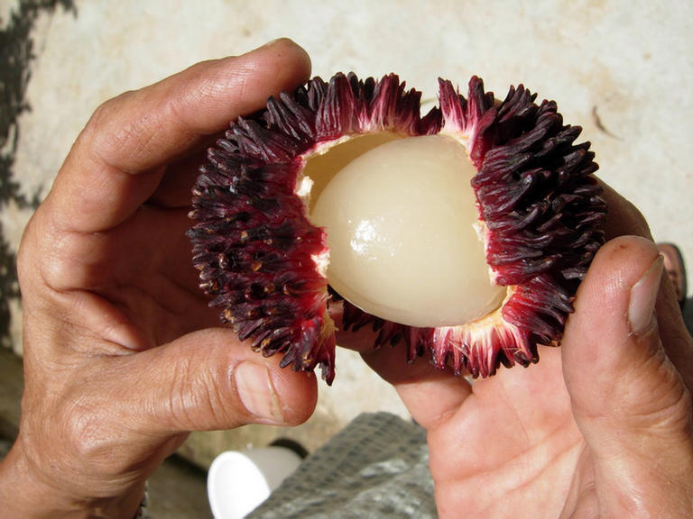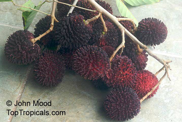 میوه ها 5 تا 7 سانتی متر طول دارند. شکل آن تخم مرغی است وپوست آن قرمز وکمی سفت است و میوه آن مانند رامبوتان و لیچی است از نظر طعم هم تقریبا شبیه رامبوتان اما کمی شیرین تر است.