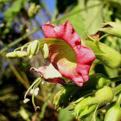 گل های آن به رنگ صورتی پررنگ و به صورت خوشه های مجتمع در انتهای ساقه های اصلی و فرعی پدیدار می شوند. هر گل از پنج کاسبرگ، پنج گلبرگ به هم پیوسته و پنج پرچم و یک مادگی دوبرچه ای تشکیل شده است. میوه از نوع کپسول و چندخانه ای است.