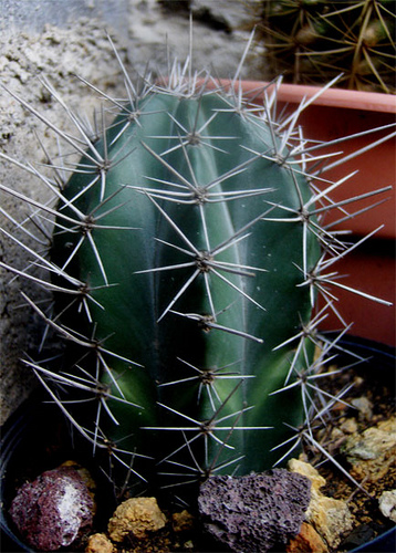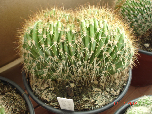دارای بدنه ای به رنگ سبز و آبی مایل به سبز با 10 تا 12 شکاف مستقیم و آرئول های مجزا هستند.این کاکتوس ها در هوای آزاد بسیار کشیده شده و شاخه های به سوی بیرون تنه منشعب می نمایند .رنگ خارها خاکستری که گاهی در قسمت راسی سیاه رنگ اند.