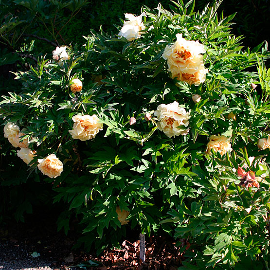ساقه هاي گل صد تومانی - درختی، چوبي و گلهايش پهن ميباشد . اين معمولاً زودتر از سه تا چهار سال پس از پيوند زدن گل نمي دهد .