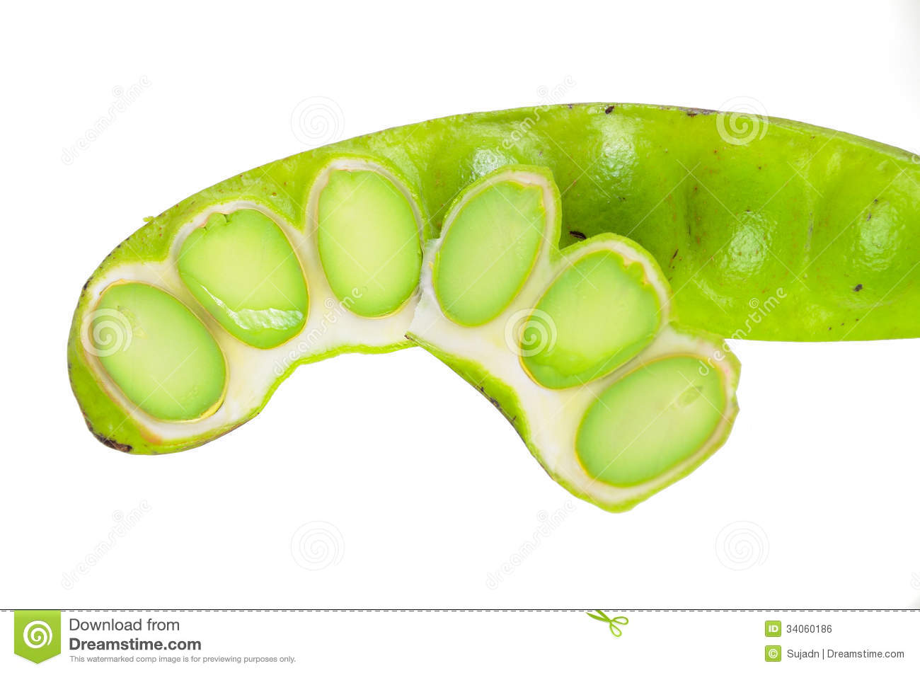 میوه ها به صورت غلافی به طول 45 تا 60 سانتیمتر و عرض 5 تا 6.5 سانتیمتر و صاف با برآمدگی هایی که محل قرارگیری بذر است دیده می شوند.