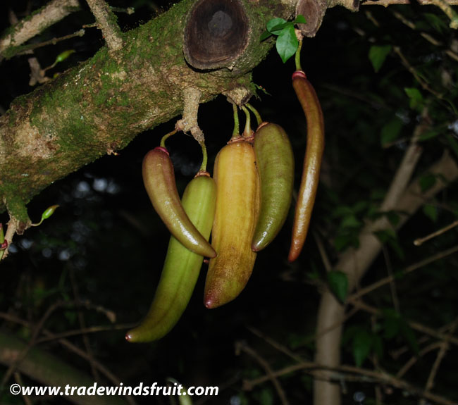 میوه های این گیاهان نیز طویل (بلند و باریک) می باشند. این میوه ها دارای پوستی مومی است. این میوه ها مزه ای شیرین دارند که یادآور نیشکر است. میوه ها می توانند بیش از 6 تا 9 اینچ طول و نیز 1 تا 2 اینچ پهنا داشته باشند. بذرهای این گیاهان به وسیله لایه نازکی از صمغ یا رزین پوشیده شده است.