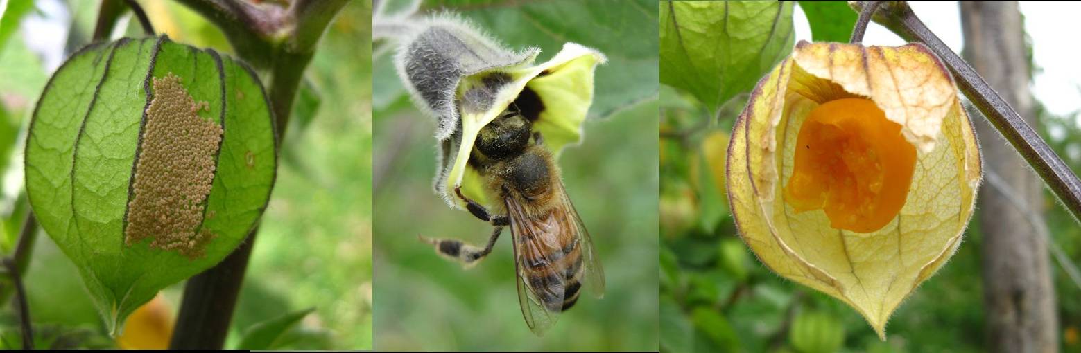 مانند گوجه فرنگی، دارای تعداد زیادی بذرهای کوچک است. رنگ میوه ها به رنگ زرد روشن تا پرتقالی است و در صورت رسیدن کامل مزه ی شیرین یا ترش ملایمی دارد. کاسه گل پس از ریزش گلبرگ ها، رشد کرده و میوه ها را محصور می کند. در صورت رسیدن میوه ها، رنگ کاسه ی گل نیز به قهوه ای تغییر می یابد. از این میوه ها برای تهیه اسنک ها، کیک ها یا مرباها استفاده می شود. همچنین به عنوان چاشنی یا سالاد میوه به همراه آووکادو نیز کاربرد دارد.