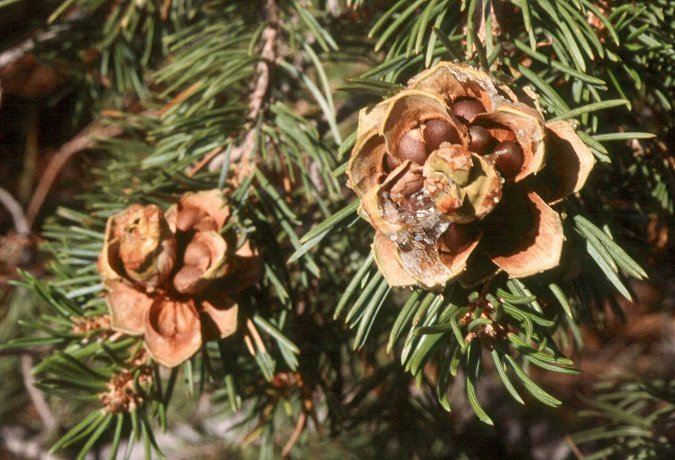 وقتی که مخروط ها رسیده شدند باز میشوند و دانه ها را به بیرون میریزند.