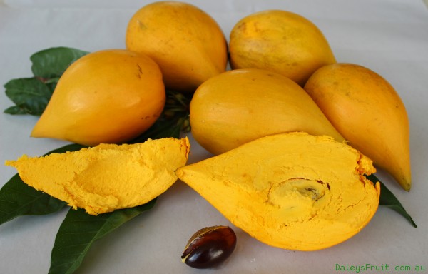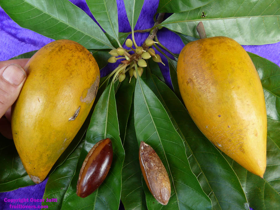 این گیاه تا حدود بیش از 10 متر ارتفاع نیز رشد کرده و میوه هایی به رنگ زرد مایل به نارنجی که حدود 7 سانتیمتر طول داشته و به صورت خام نیز مصرف خوراکی دارند، تولید می کند. این میوه ها دارای گوشتی شیرین با بافتی سخت می باشند. این میوه ها در نواحی گرمسیری بهترین طعم را خواهند داشت. شکل و اندازه ی میوه در کولتیوارهای مختلف، متفاوت است. بهترین و بازارپسندترین نوع میوه از این گیاه، میوه ها بزرگتر و طویل تر، با پوستی براق و وزنی بیش از 14 اونس می باشد. گوشت میوه گاهی به صورت خمیری است اما بهترین واریته، گوشتی خامه مانند و کرم رنگ دارد.