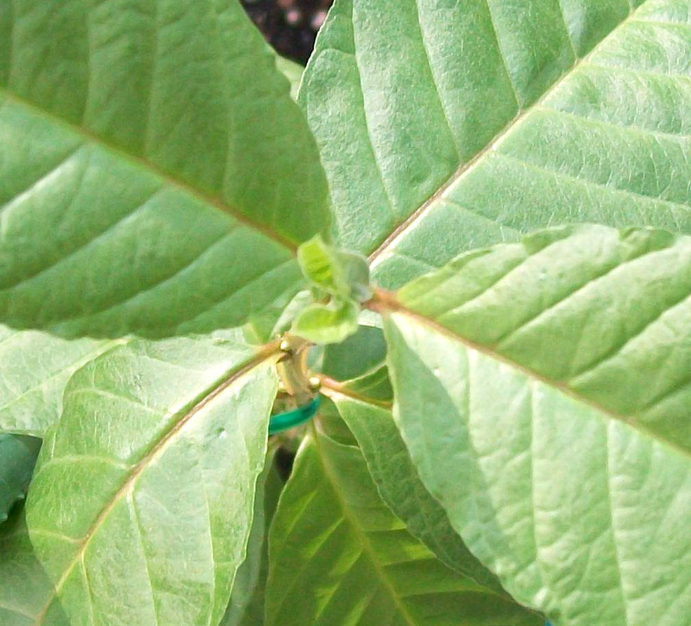برگها بیضی شکل و براق هستند ، 14 سانتیمتر طول و 8 سانتیمتر عرض دارند .