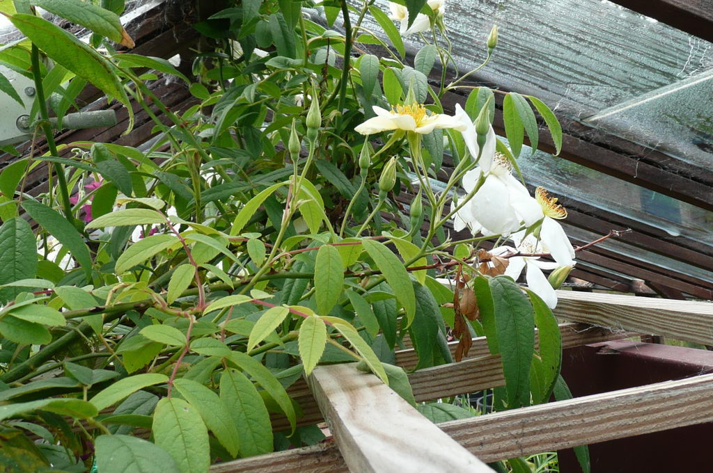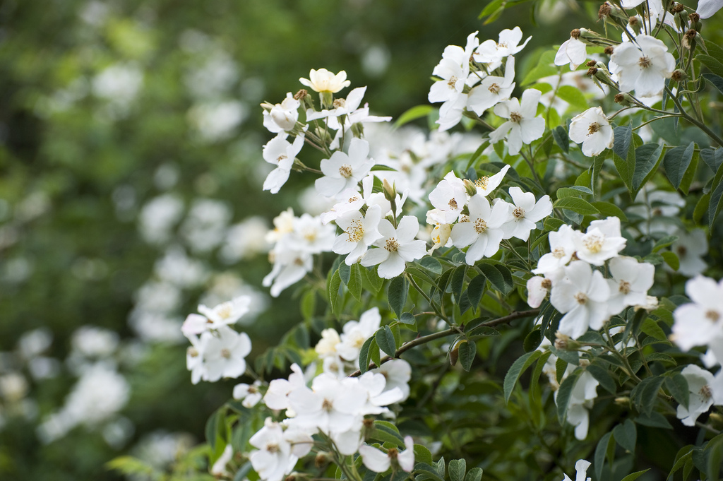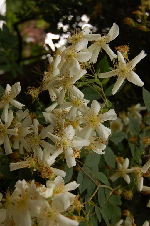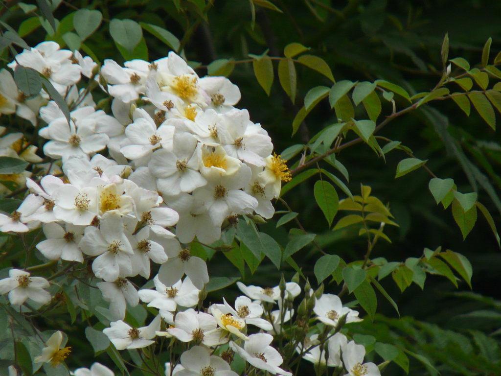 رز وحشی گیاهی بوته ای و بالارونده است. ساقه ی گیاه خاردار است و برگ ها مرکب و دارای 5 تا 7 برگچه هستند . گل ها زیبا ، خوشبو و معطر و سفید رنگ بوده و دارای 5 گلبرگ هستند. گل ها به صورت خوشه ای در انتهای شاخه ها ایجاد می شوند. میله های پرچم به یک ستون متصل می شوند و در مرکز گل پرچه ها انبوه و به رنگ زرد هستند.