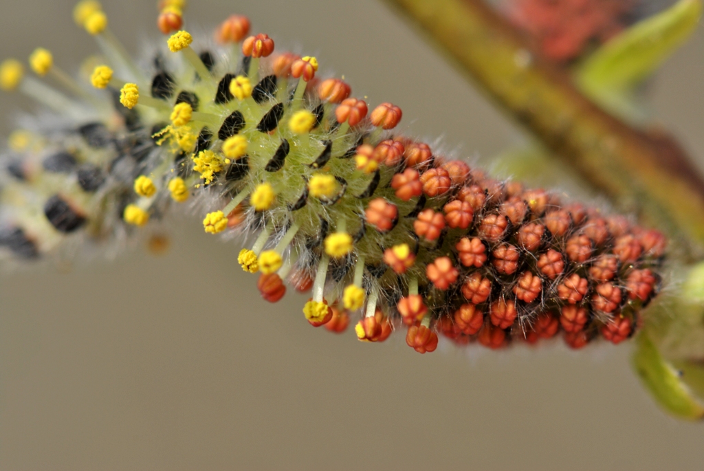 گل های بید سرخ کوچک بوده و بین 1.5 تا 3.5 سانتیمتر میباشند.