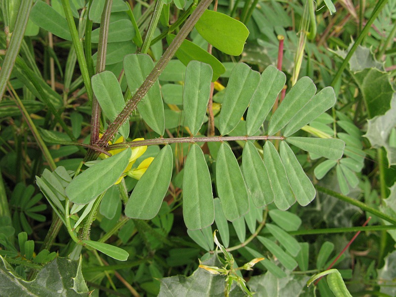 برگ های این گیاه متناوب، دمبرگ دار، دارای گوشوارک های مشخص و گوشوارک ها غشایی یا کاغذی می باشند. برگ ها مرکب، پرمانند و شانه ای هستند. برگچه ها دارای آرایش متقابل و دارای حاشیه ای یکنواخت بوده و حدود 10 برگچه در هر دسته برگ وجود دارد.