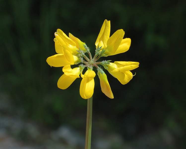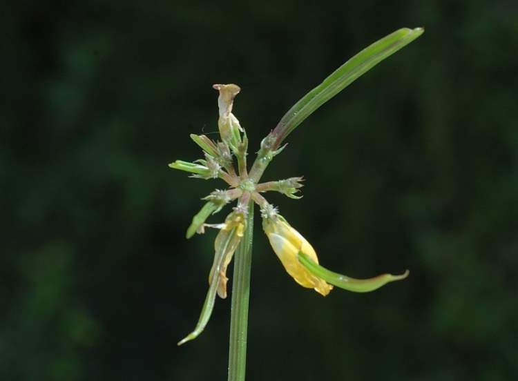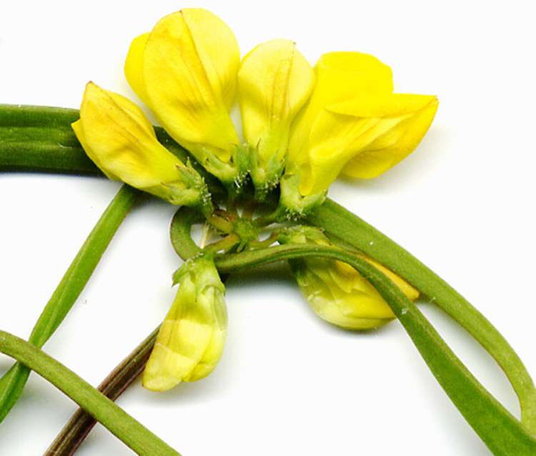 گل آذین ها چتر مانند و جانبی اند. گل ها و متقارن بوده و کاسه گل دارای دو لُب و کرکدار است. گلبرگ های گل نیز جدا از هم، چنگالی و به رنگ نارنجی یا زرد می باشند. حدود 9 تا 10 پرچم در هر گل وجود دارد که 9 تای آن پیوسته و یکی از پرچم ها آزاد است.