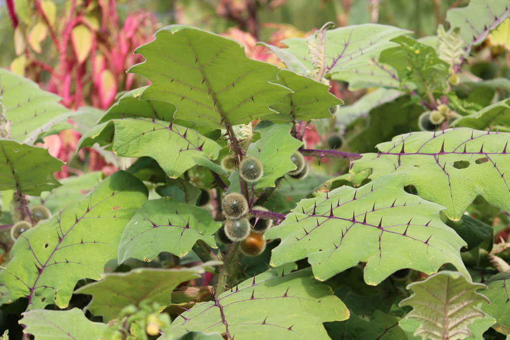 در سولانوم سودولولو، شتهها و سفیدبالکها با مکیدن شیره گیاهی باعث زردی، پیچیدگی برگ و انتقال ویروسها میشوند. تریپسها نیز لکههای نقرهای و بدشکلی برگ ایجاد میکنند و کنه تارتن با تارهای ظریف و لکهگذاری، فتوسنتز را کاهش میدهد. پایش هفتگی زیرِ برگها و حذف برگهای شدیداً آلوده، پایه مدیریت آفات است.