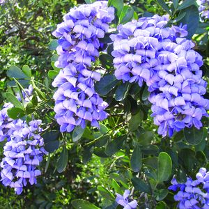 دارای گل بنفش بسیار معطر، شبیه رایحه آب انگور، که در خوشه های بزرگ در ماه های مارس و آوریل تولید می شوند که دارای غلافی به طول حدود 10 سانتی متر حاوی حدود 4 دانه ی نارنجی میباشد