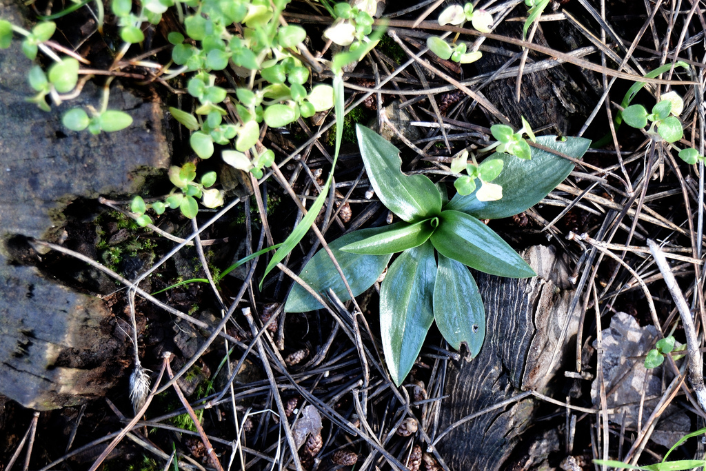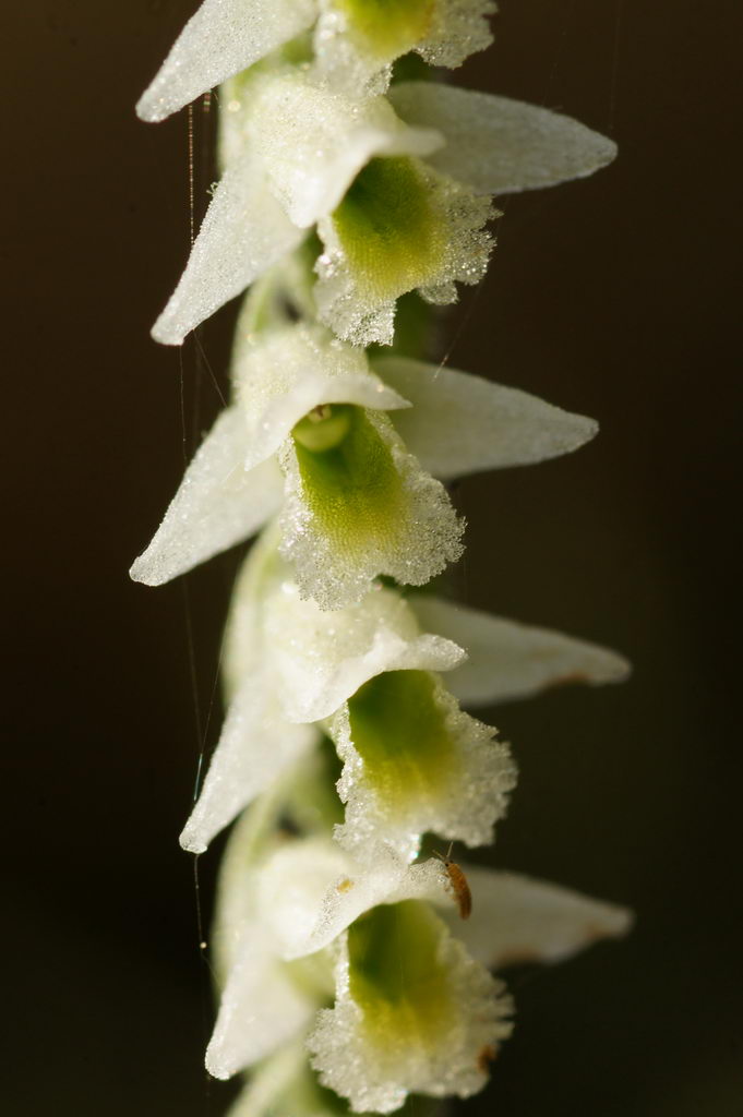 این گونه به شکل روزت ایجاد می شود و برگ های بیضی شکل آن بر روی زمین ایجاد می شوند و گسترش می یابند، و سپس گل آذین به شکل ساقه ای بالارونده ایجاد می شوند و بر روی آن گل های ریزی به رنگ سفید تا ارغوانی روشن به شکل مارپیچی با تعداد بین 6 تا 30 ایجاد می شوند.