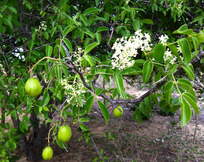 باردهی درختان یکبار در سال رخ می دهد و هر درخت می تواند بیش از 300 کیلوگرم میوه در سال و پس از یک بار برداشت تولید می کند. سیستم ریشه ای قوی و دارای شبکه های زیاد از غده هایی هستند که می توانند به عنوان غده های ذخیره ای محسوب شوند. هر غده می تواند در خود آب ذخیره کرده تا در فصل خشک به مصرف درخت برسد. هر درخت می تواند بیش از 3000 لیتر آب برای فصول خشک در خود ذخیره نماید. میوه ها به وسیله دست برداشت شده و به راحتی نیز در طول چیدن و قرار دادن در سبد آسیب می بینند.