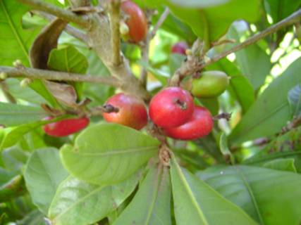 میوه ها قرمز رنگ، کشیده و دارای مزه ای شیرین تا ترش و شیرین می باشند. این میوه ها چندبار در سال تولید می شوند. این میوه ها دارای یک نوع گلیکوپروتئینی هستند که در اثر خوردن، احساس ترشی روی زبان ایجاد می کنند.