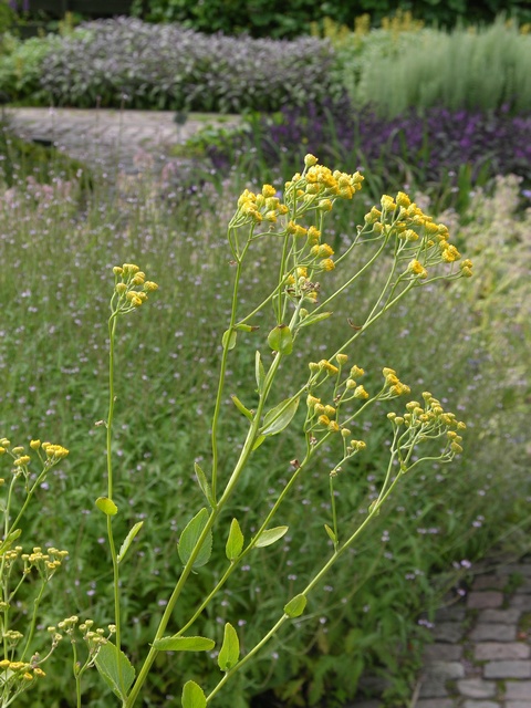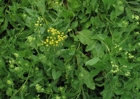 کاپیتول های گیاه کوچک و فراوان و به رنگ زرد و مجتمع و به صورت دیهیم مرکب در انشعابات ساقه به وجود می آید. در کاپیتول های آن منحصراً گل های لوله ای زرد رنگ مشاهده می شود ولی نمونه های متعلق به کشورهای آسیایی، گل های زبانه ای کوچک نیز در حاشیه کاپیتول ها دارند.