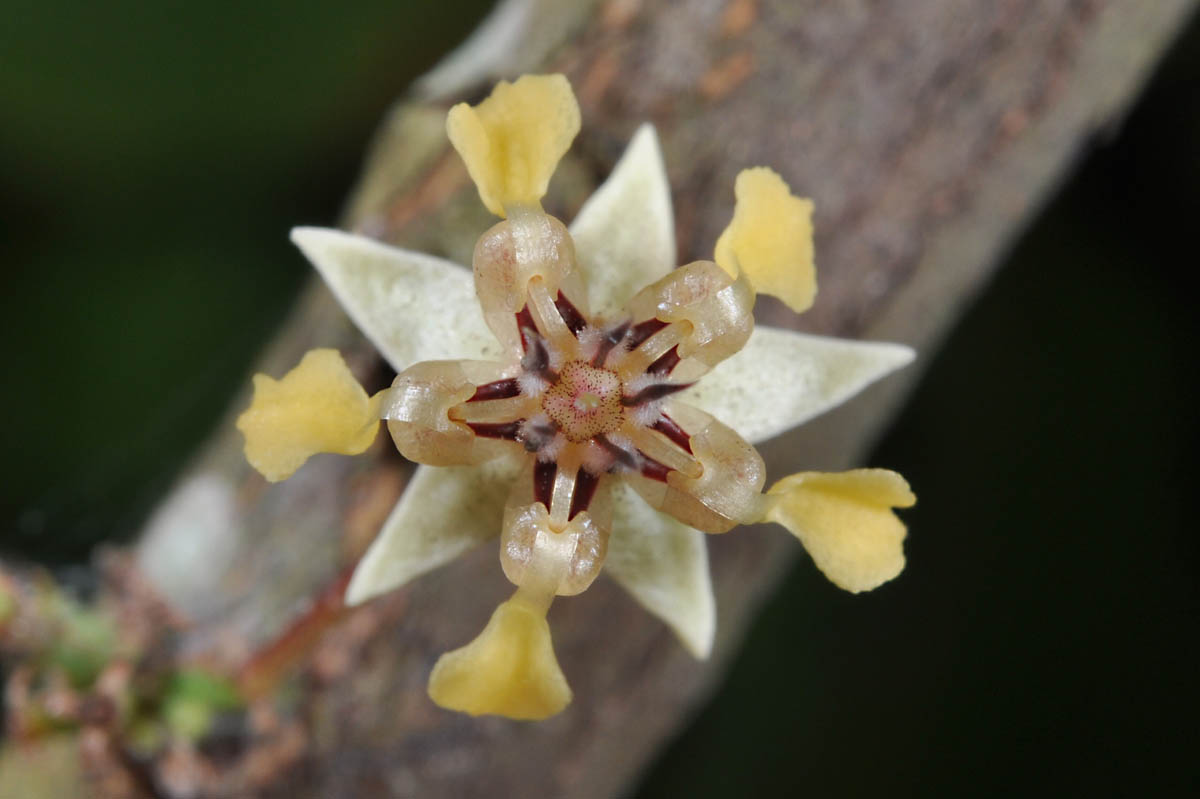 درخت Theobroma cacao گلهای کوچک خود را مستقیماً روی تنه و شاخههای قطور (پدیدهٔ کائولیفلوری) تشکیل میدهد. گردهافشانی عمدتاً توسط مگسهای ریز خانوادهٔ Cecidomyiidae در محیطهای گرم و مرطوب جنگلهای بارانی انجام میشود و میزان موفقیت آن پایین است؛ بنابراین تنها بخشی از گلها به میوه تبدیل میشوند.