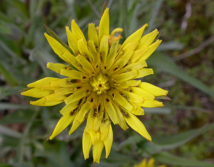 گل ها به رنگ زرد و به قطر 4 تا 6 سانتیمتر بوده که در اواخر بهار یا اوایل تابستان ظاهر می شوند. گل آذین ها اغلب در هنگام صبح شکوفا شده و در عصر بسته می شوند. زمانی که گل ها به بذر رفتند در قسمت انتها دارای پاپوس می شوند مانند گل قاصدک. این بذور فندقه بوده و 2 تا 4 سانتیمتر نیز طول دارند.