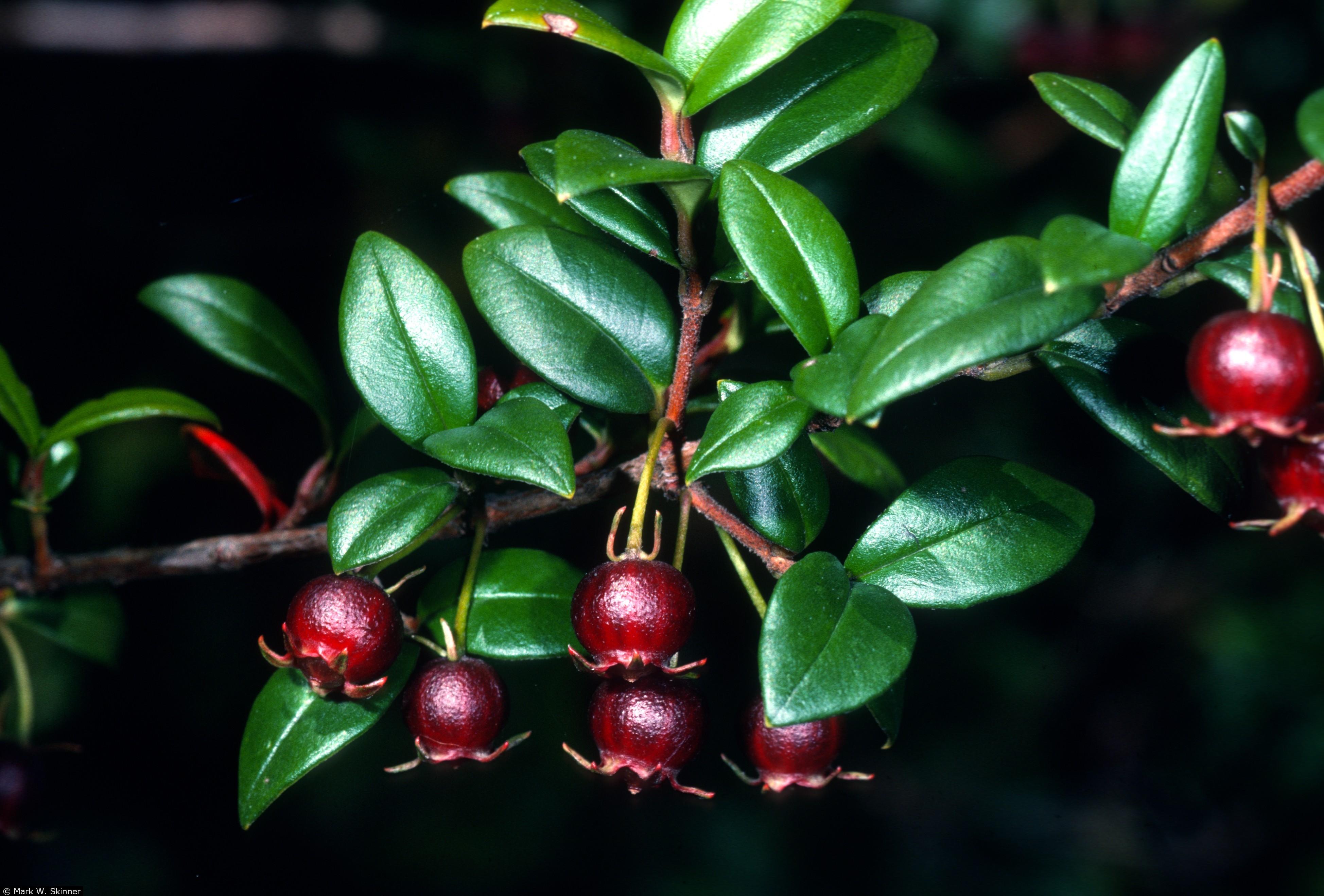 برگ ها بصورت متقابل قرار گرفته و بیضی شکل هستند. 1 تا 1.5 سانتی متر پهنا دارند. همه ی سطح برگ ها براق و سبز تیره می باشد.