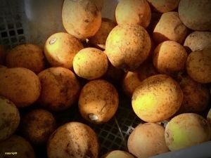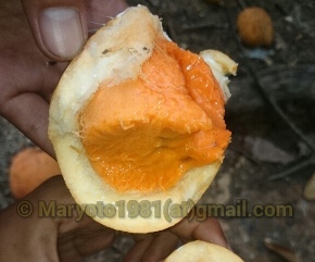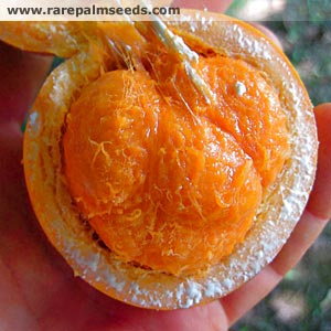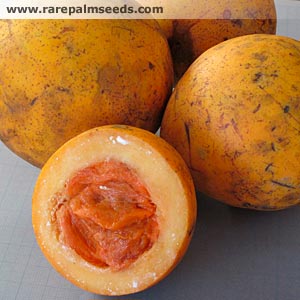 این گیاه، میوه هایی به رنگ زرد مایل به نارنجی، سته ای و به قطر 2 تا 10 سانتیمتر تولید می کند. پالپ میوه ها به رنگ نارنجی کمرنگ بوده و دارای طعم و مزه ای فوق العاده می باشد. طعم این میوه ها مشابه طعم و مزه ی شربت پرتقال است. معمولاً در نواحی بومی به صورت خودرو می روید و میوه های آن از درختان خودرو برداشت می شود. هر میوه دارای یک بذر فشرده و تخم مرغی شکل است که حدود 2 سانتیمتر طول و 1 سانتیمتر نیز عرض دارد.