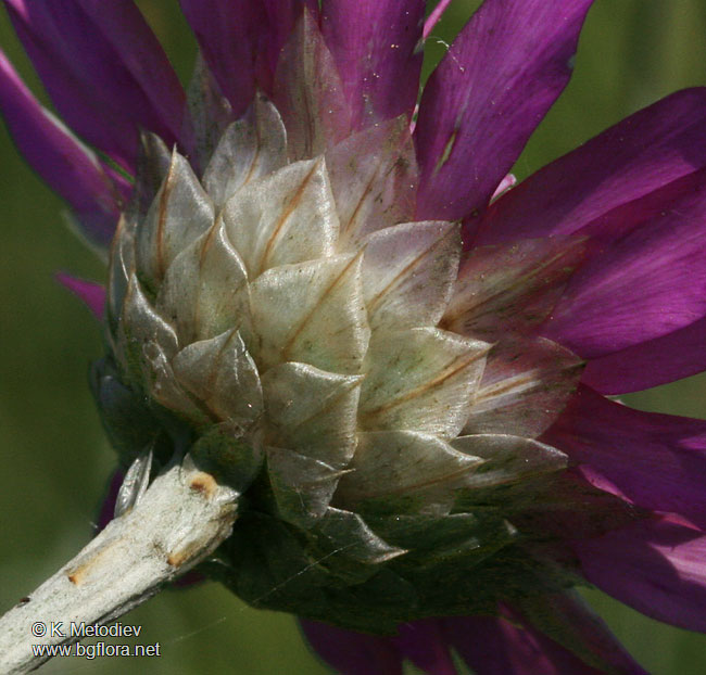 گل ها به صورت انتهایی و منفرد هستند. براکته های گلبرگ مانند توسعه یافته و به رنگ صورتی، بنفش یا به ندرت سفید رنگ دیده می شوند. گل های لوله ای در این گیاه ارغوانی رنگ می باشند. گل های این گیاه از ماه های "می" تا "آگست" ظاهر می شوند.