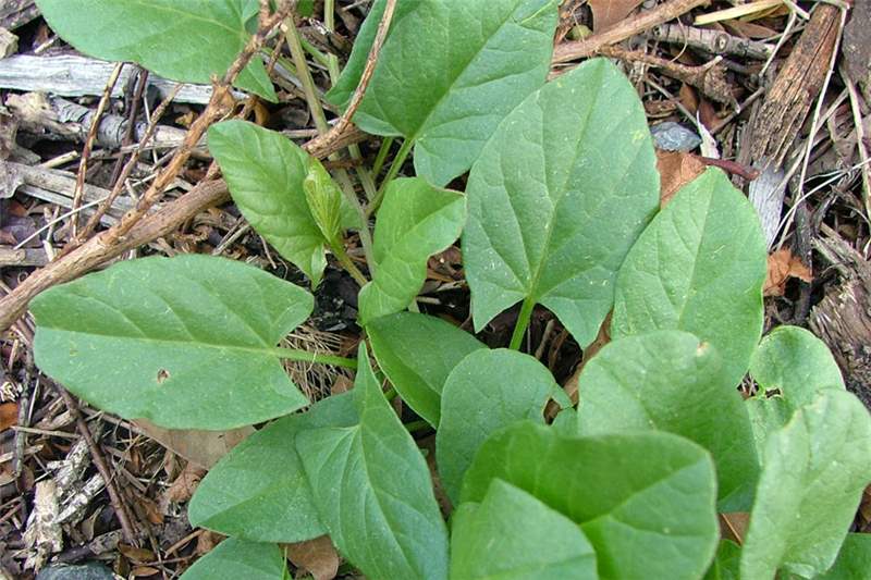 گیاهچه آن دارای برگ های لپه ای سبز تیره با رگبرگ های قابل رویت و تقریباً این برگ ها قلبی شکل تا گرد می باشند. این برگ ها ده روز پس از جوانه زنی ظاهر می شوند. ولین برگ های حقیقی سه گوش، نوک تیز و در قاعده دارای لوب های عمیق می باشند. گیاهچه از طریق شیار موجود در برگ های پایینی براحتی تشخیص داده می شود. قابل ذکر است که ساقه های جوان حاصل از گیاهان تثبیت شده، برگ های قاعده ای نخواهند داشت.